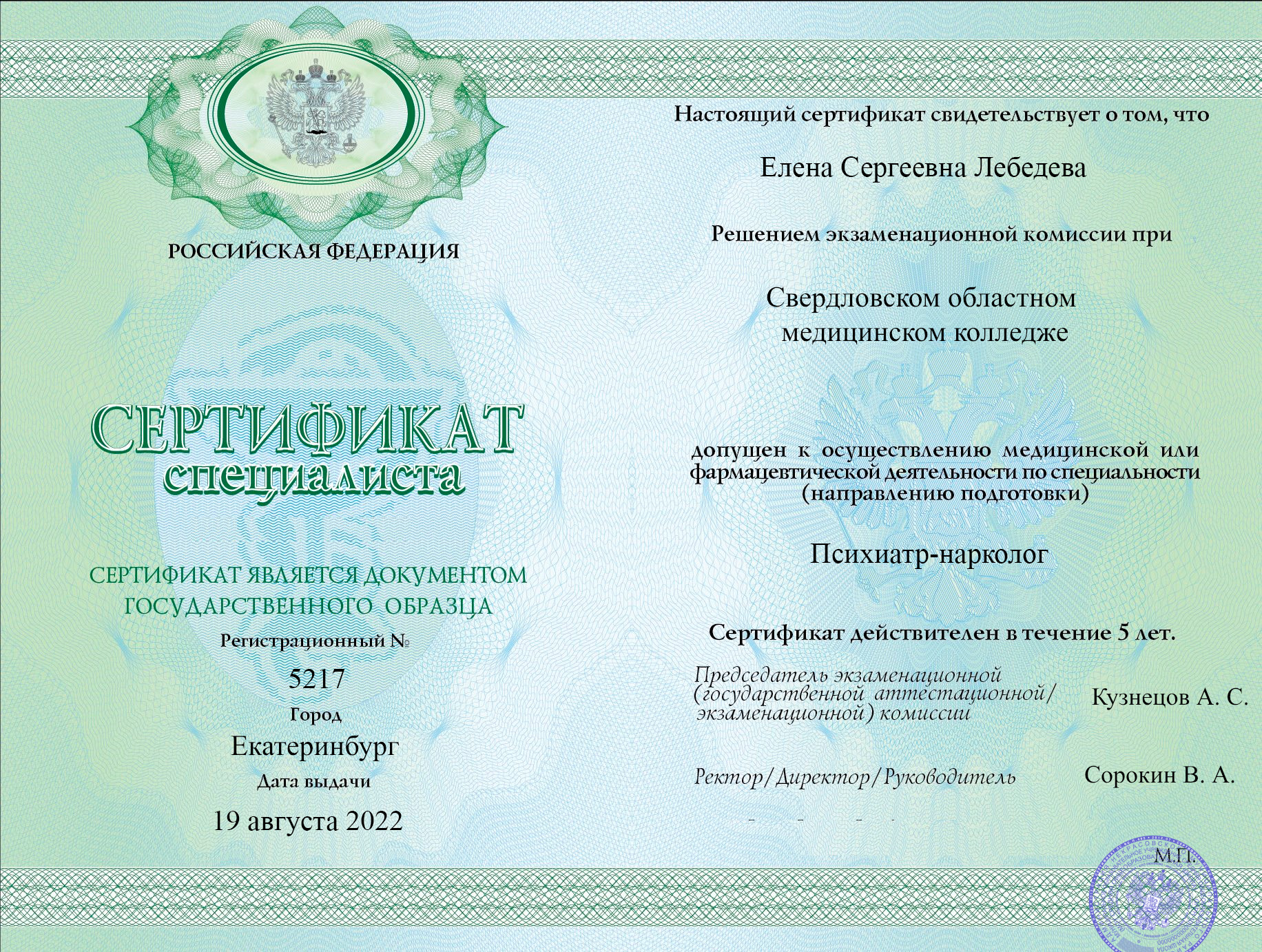 Елена Сергеевна Лебедева врач нарколог клиники доктора Стукаловой в Бердске